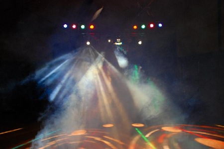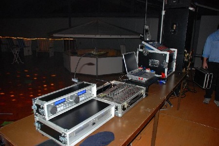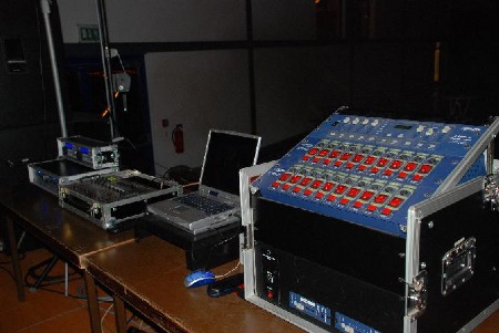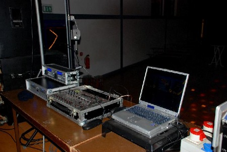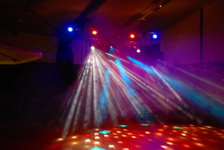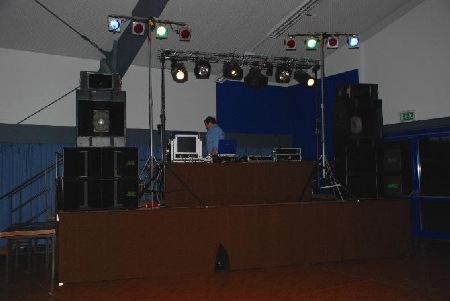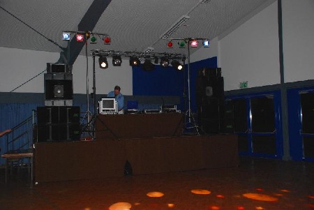 Probelauf der Musik- und Lichtanlage vor einer Veranstaltung in der Tennis-Mehrzweckhalle
