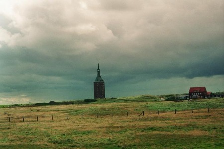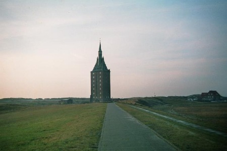 1602 wurde nach fünfjähriger Bauzeit der alte Westturm eingeweiht. Er diente sowohl als Kirchturm als auch als Schifffahrtszeichen. 1914 wurde er aus „militärischen“ Gründen gesprengt. Angeblich weil man wegen möglichen englischen Seeangriffen ein markantes Seezeichen entfernen wollte. Es wird aber vermutet, das sich die Marine vor der kostspieligen Erhaltung des Turmes drücken wollte.